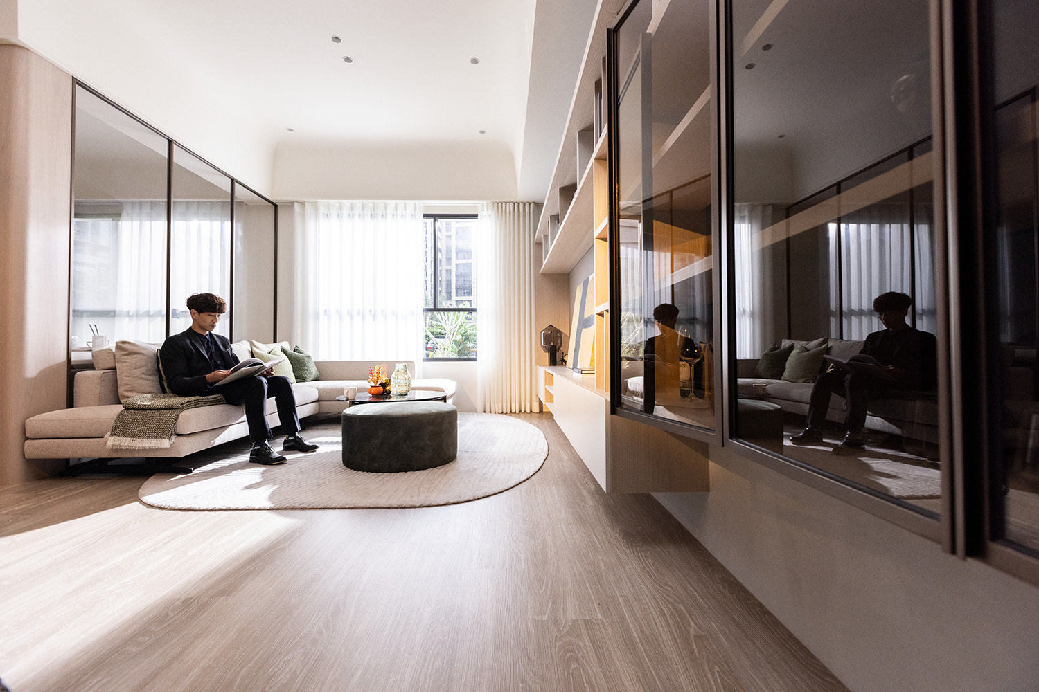或許很多人不知道,200多年前的清朝時代,土城因為地理條件的關係,曾經擁有很多茶園,更有「海山茶」的美名,然而因為時代變遷,種茶與製茶逐漸式微,20世紀的土城變成工業小鎮,而到了21世紀,轉身成為新興科技產業園區。然而在這塊土地上,茶是不可抹滅的DNA,更是串聯古今最美好的相遇,京盛宇像是一個跨領域交會的平台,連結傳統茶道的品質與現代五感體驗,泱美把看房購屋變成一趟感受生活的美好旅途,充滿陽光與朝氣的土城,與泱美室內優雅的空間相互輝映,猶如盛裝幸福的容器般,引領人們領略茶香滋味。