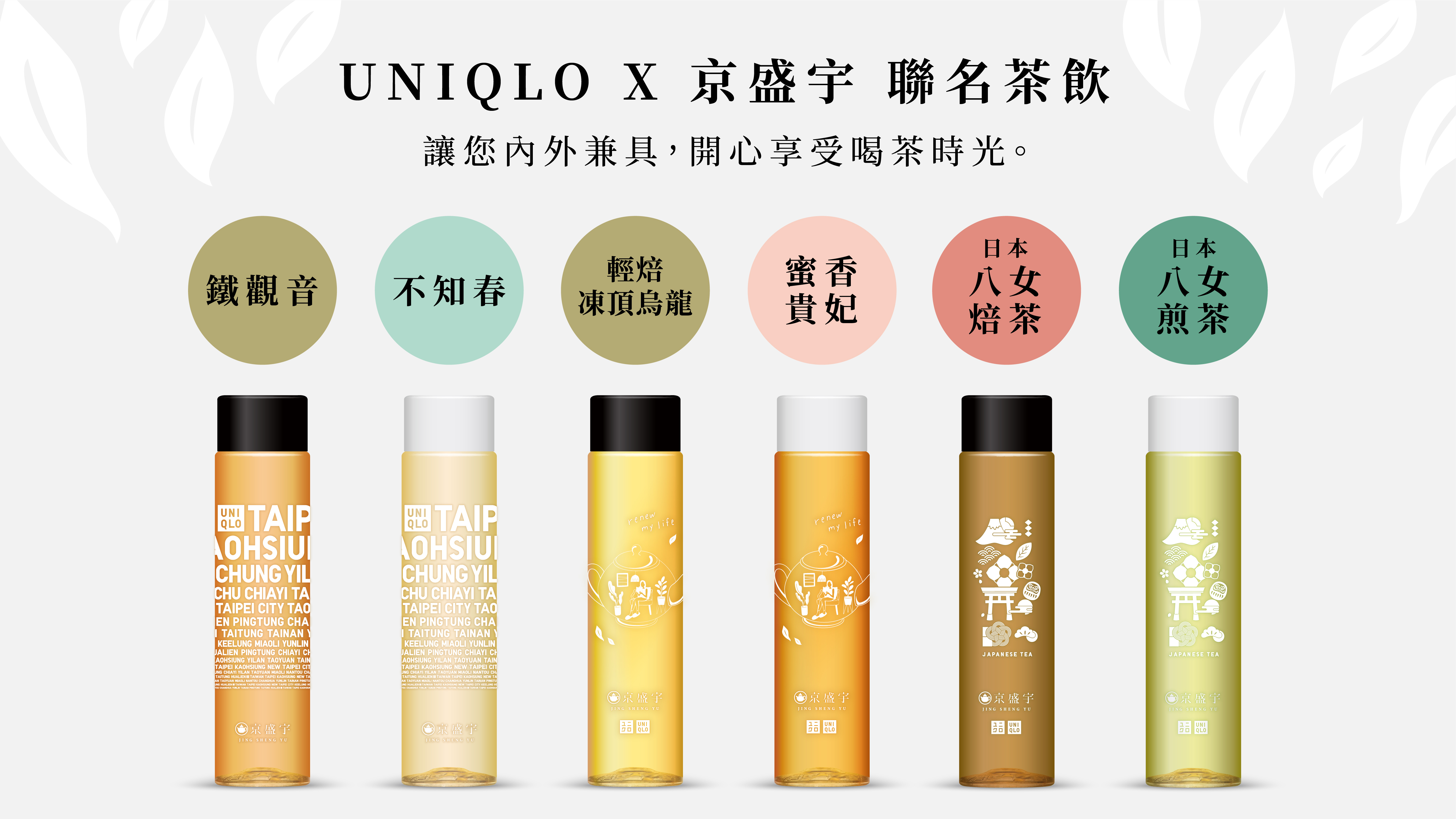 本次非常感謝由UNIQLO 團隊,集思廣益、去蕪存菁、精雕細琢後,將京盛宇對茶的美好想像以及這個品牌一直在落實的精神,梳理出三款圖案: