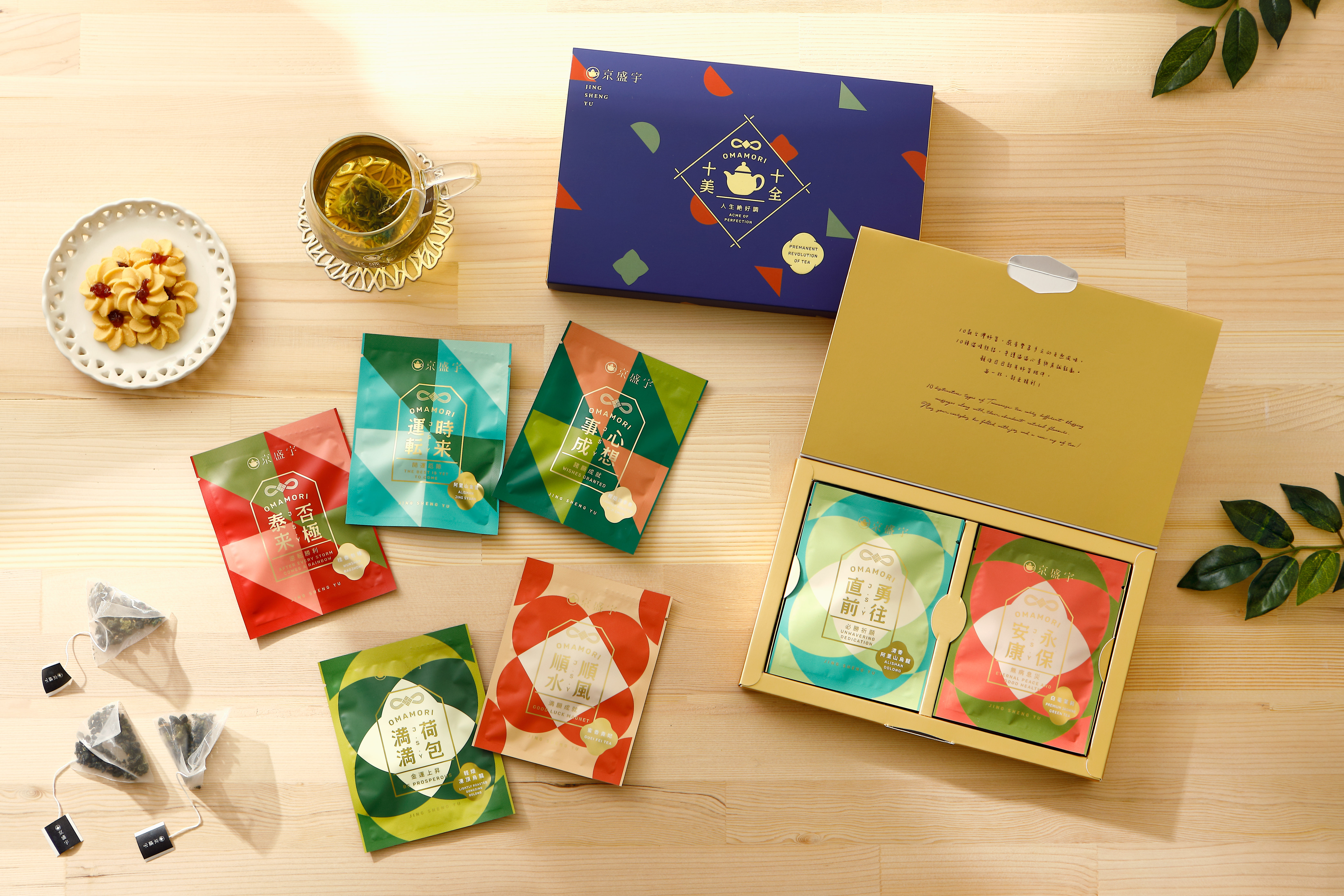 十全十美御守袋茶禮盒,就是一個以利他的起心動念為本,一步步克服許許多多包裝製作上的大小困難,而最終得以實現京盛宇對全世界、對所有人祝褔的商品。「療癒身心、傳遞祝福」是這個產品的主軸,在疫情肆虐的時刻,我希望每個人可以因為一杯茶,得到療癒身心的片刻,同時面對時局的不安、未知,不要對未來失去希望,能夠在拆封每一個包裝的當下,得到包裝上所印刷的正向力量,這樣可以繼續對未來保有希望、熱情、動力,讓每個人可以因為這禮盒裡面的每一杯,每一天都能璀璨、精彩。
