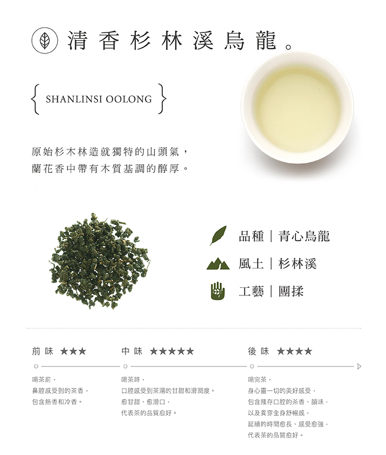 課程中將帶領您一同品嚐京盛宇三系列中的人氣三風味: 清香杉林溪烏龍、輕焙凍頂烏龍、高山小葉種紅茶