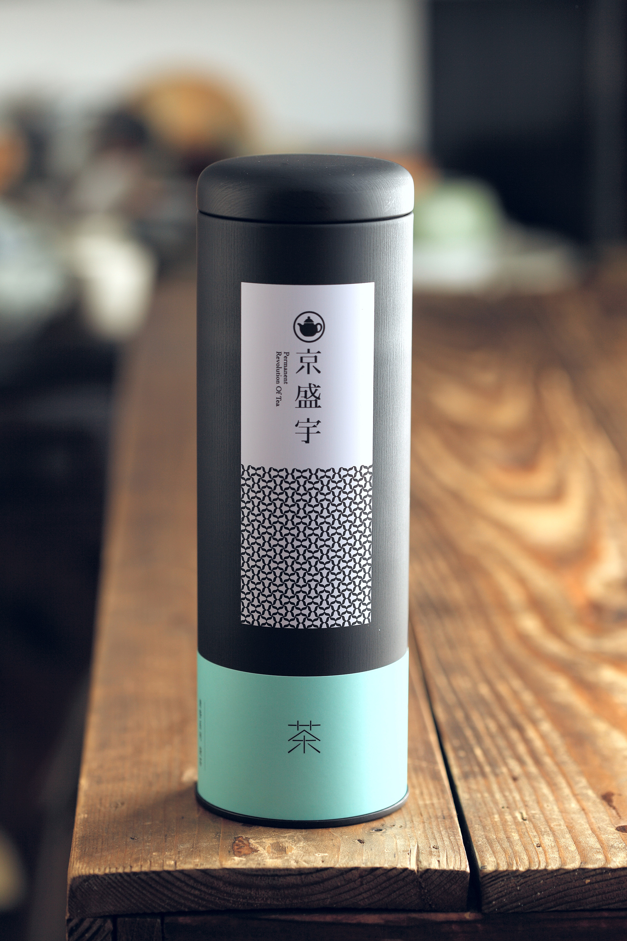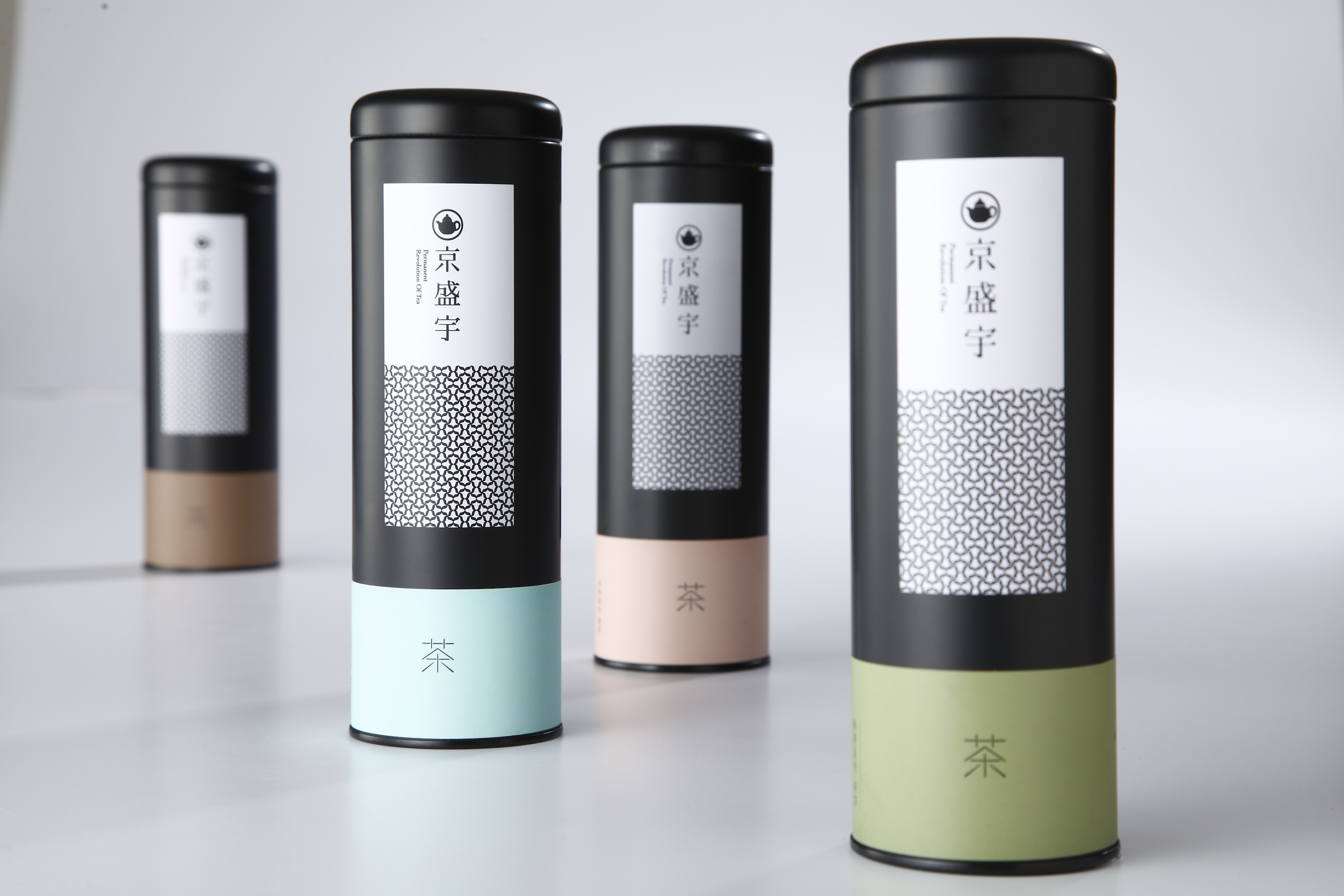 設計雖然卡關,但總要找到核心問題是什麼。美感的呈現對老五來說,不是難事,但鐵罐的設計要如何與京盛宇產生連結,則是關鍵點。有一天,我就像阿基米德發現浮力原理一樣,澡都還沒洗好,就裸身打電話給老五說我的想法:「京盛宇第一個產品是裝茶飲的隨身瓶,隨身瓶裝的是已將茶葉沖泡後的茶飲,蓋子是黑色的,瓶身是透明的,透露自然美好、未經雕琢的茶湯色。而鐵罐裝的是還沒有經過沖泡的茶葉,是否可以試試看,將隨身瓶黑蓋和透明瓶身的比例顛倒?」同時,我把所有的台灣茶,依據風味基調分成四個系列,並且以四種顏色象徵風味基調,作為環繞鐵罐的四色貼紙。另外,為了再次強化京盛宇與茶的連結,加入茶葉重複排列的紋路和茶字。